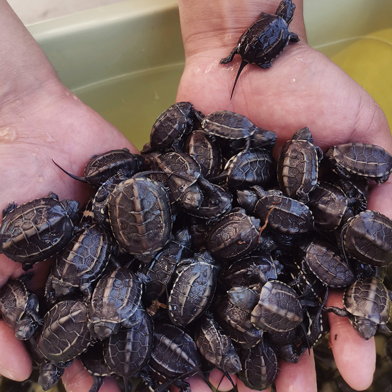 淘顶墨龟苗活体外塘深水中华小草龟初墨龟苗宠物情侣一对金线长寿龟