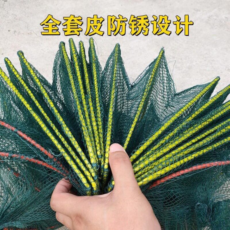 新款虾笼地网渔网捕鱼笼抓泥鳅黄鳝螃蟹笼大号折叠加厚捕鱼网虾网