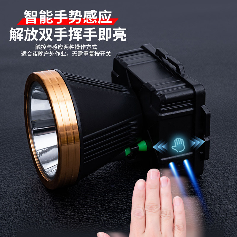 天黄光头灯头戴式强光钓鱼专用感应超亮超长续航大容量户外照明矿灯