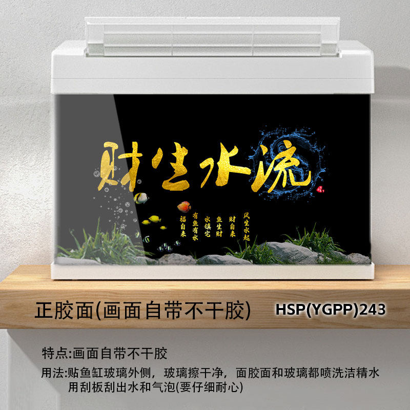 淘宝3d新款高清鱼缸背景贴纸日进斗金自带正面胶5d水族箱造景背景贴画