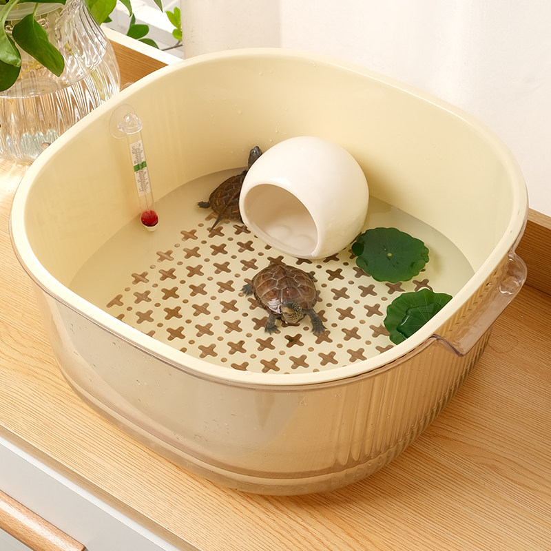 这款家用小型双层乌龟饲养缸,专为巴西龟等小型龟类设计,适合摆放在客厅、宿舍或桌面,兼具实用性与美观性。采用双层结构,上层为饲养区,下层为隐藏式储水槽,通过巧妙的水循环系统实现自动补水,换水便捷,省时省力。缸体透明度高,搭配简约造景设计,可种植水生植物或放置沉木、假山,营造自然生态环境。底部设有排污阀,清洁更轻松。整体小巧精致,不占空间,是新手养龟的理想选择。安全材质无毒无味,保障宠物健康,同时提升家居格调,让养龟成为一种轻松愉悦的生活方式。