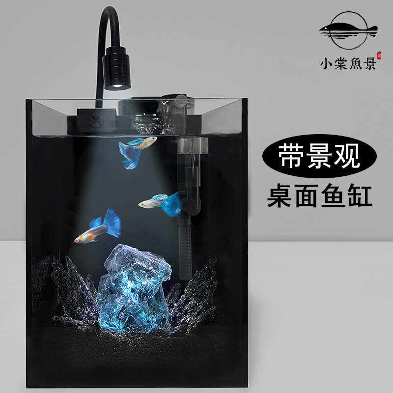 淘宝海底世界斗鱼鱼缸水晶造景小型家用桌面超白黑背玻璃免换水小鱼缸