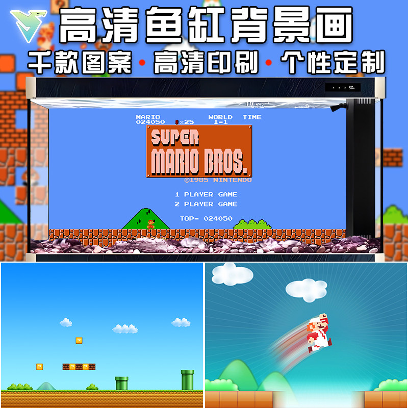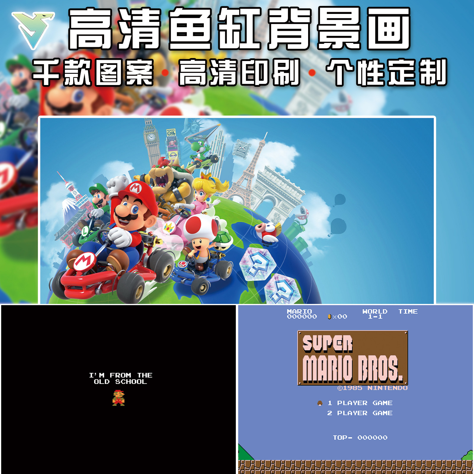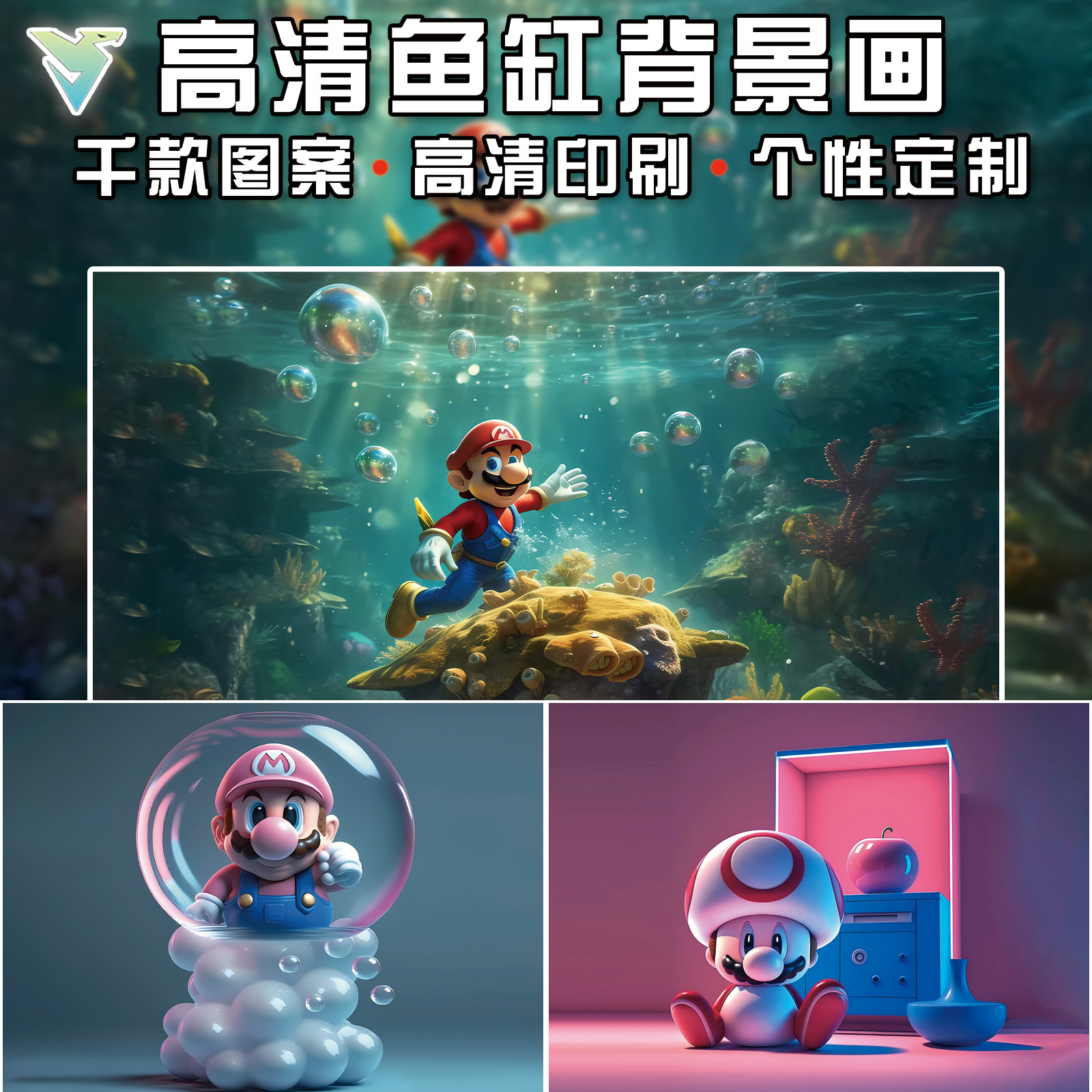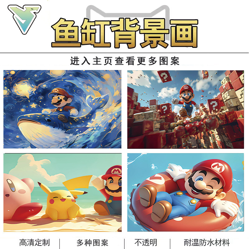 淘宝超级马里奥动漫小鱼缸新款背景贴纸水族箱造景高清定制自粘壁纸