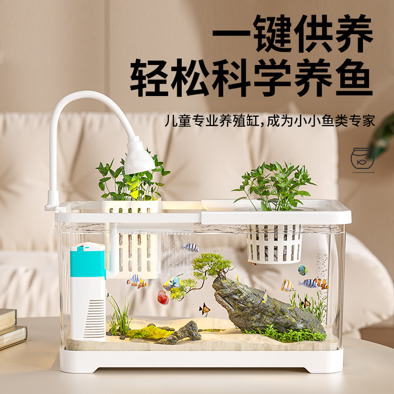 天猫鱼缸客厅2026新款过滤制氧一体机水培鱼缸造景摆件金鱼乌龟饲养缸