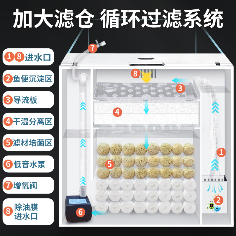 天猫新款侧滤鱼缸全套造景超白玻璃小型家用客厅桌面自循环生态水族箱