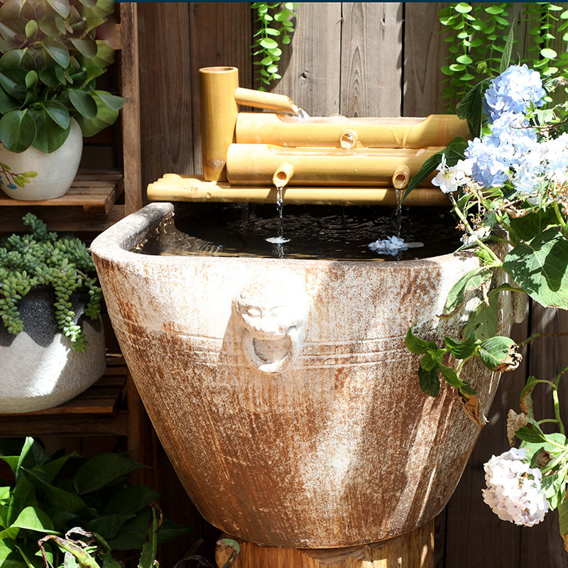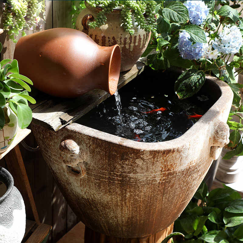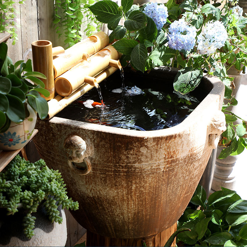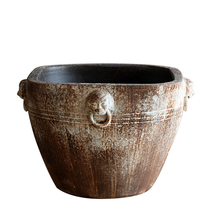 淘宝仿石鱼缸大号陶瓷古法鱼缸客厅落地摆件造景荷花缸方形养鱼盆粗陶