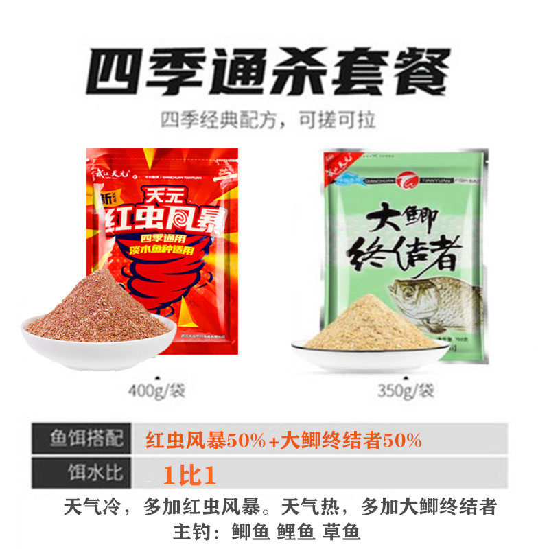 淘宝武汉天元饵料红色风暴大鲫终结者鱼饵野钓秋冬鲫鱼浓腥香通杀套餐