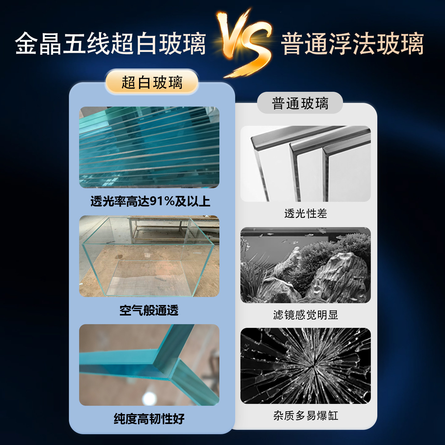 BYVISUAL金晶五线超白玻璃鱼缸,采用高透光率金晶五线超白玻璃打造,透光率高达92%以上,呈现清澈如水的视觉体验,让水草与鱼群色彩更真实生动。适用于大中小型客厅,支持水草生态造景与溪流缸设计,搭配合理尺寸与简约边框,完美融入现代家居风格。缸体强度高、耐腐蚀,密封性佳,有效防止漏水。底部预留底滤空间,便于构建高效过滤系统,维持水质稳定。无论是打造繁茂水草景观,还是模拟自然溪流生态,BYVISUAL鱼缸都能为观赏鱼提供健康舒适的生活环境,是水族爱好者理想的生态造景首选。