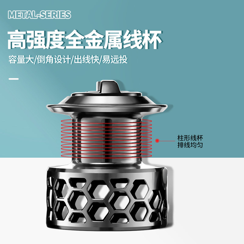 淘新款路亚纺车轮金属斜口线杯正品海竿矶钓超顺滑远投专用鱼线轮子