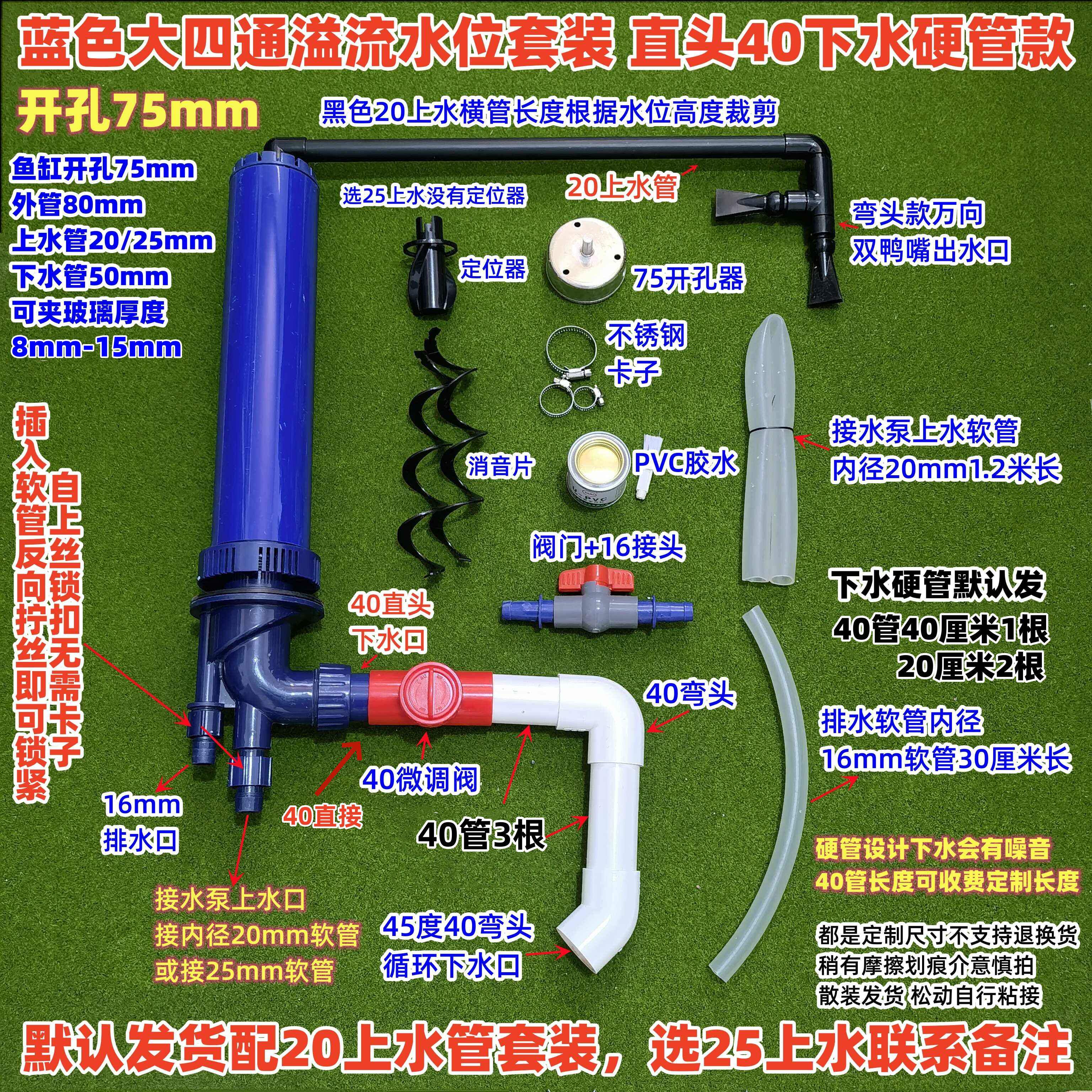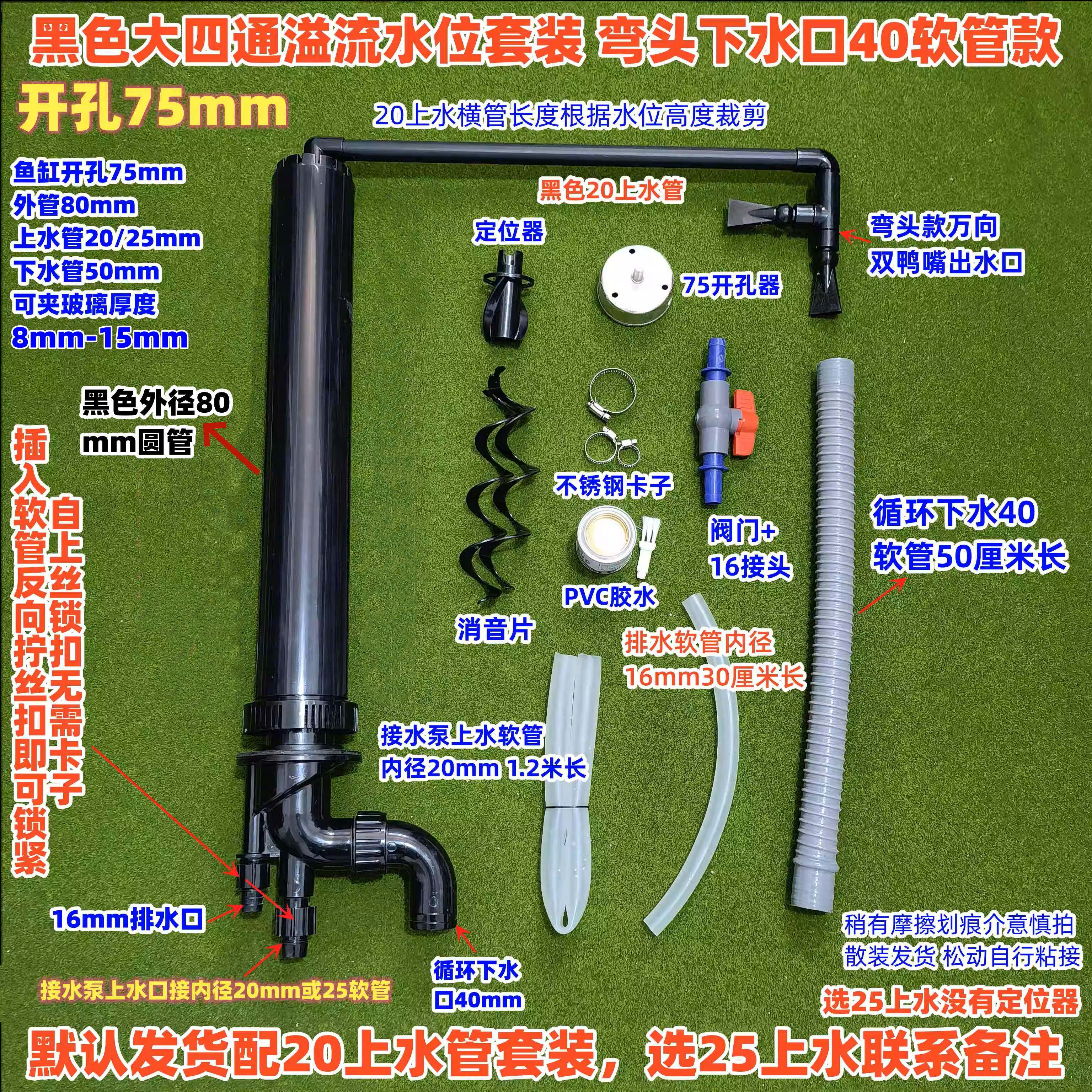淘宝鱼缸开孔75四通三重溢流水位套装底滤管件上下水一体带强排水功能