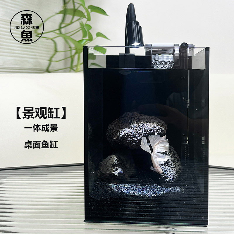 淘宝恒温鱼缸高级专用斗鱼缸生态造景桌面客厅水族箱小型创意缸暗黑风