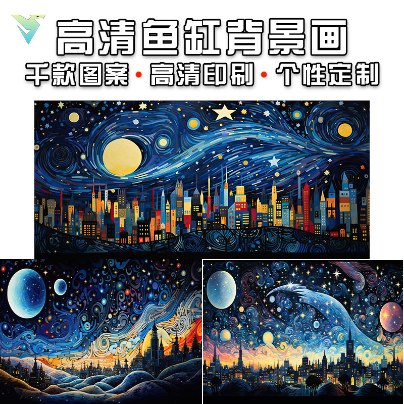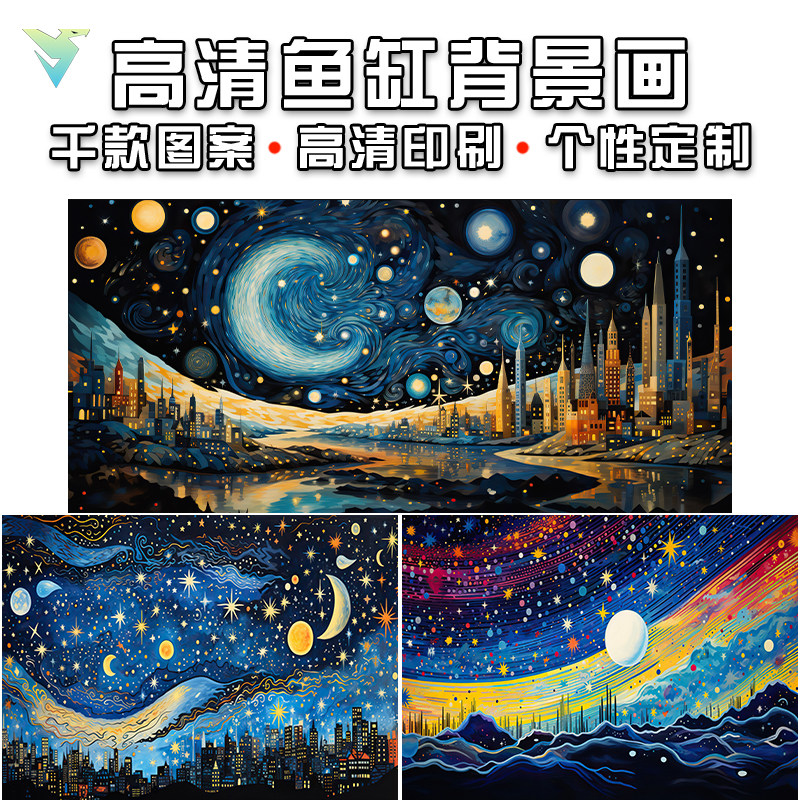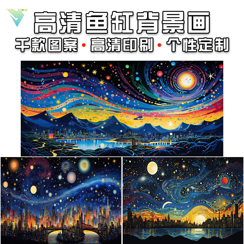 淘宝油画星空鱼缸背景贴纸壁纸定制高清3d立体水族箱贴纸造景装饰自粘
