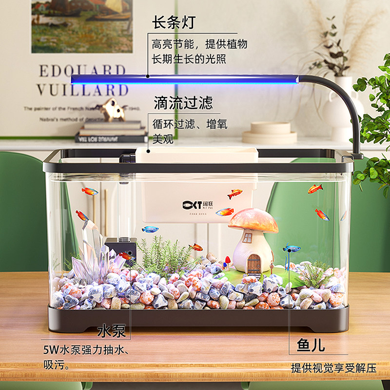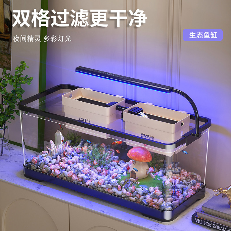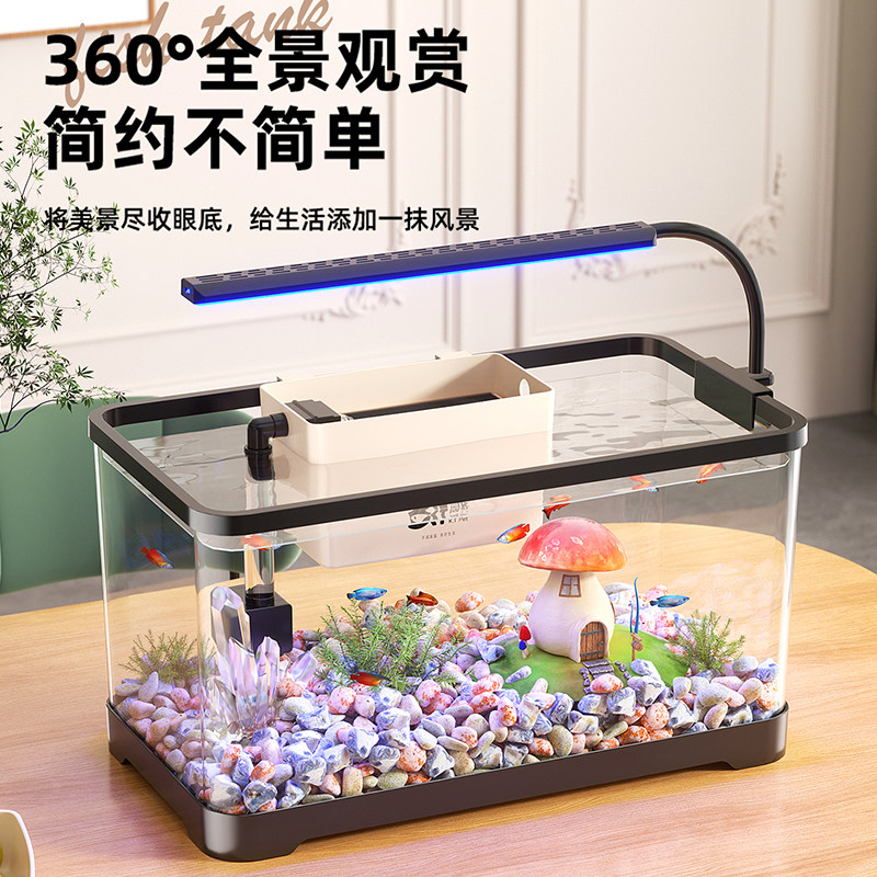 天猫鱼缸家用懒人高清水族箱新款滴流过滤制氧带灯生态造景塑料金鱼缸