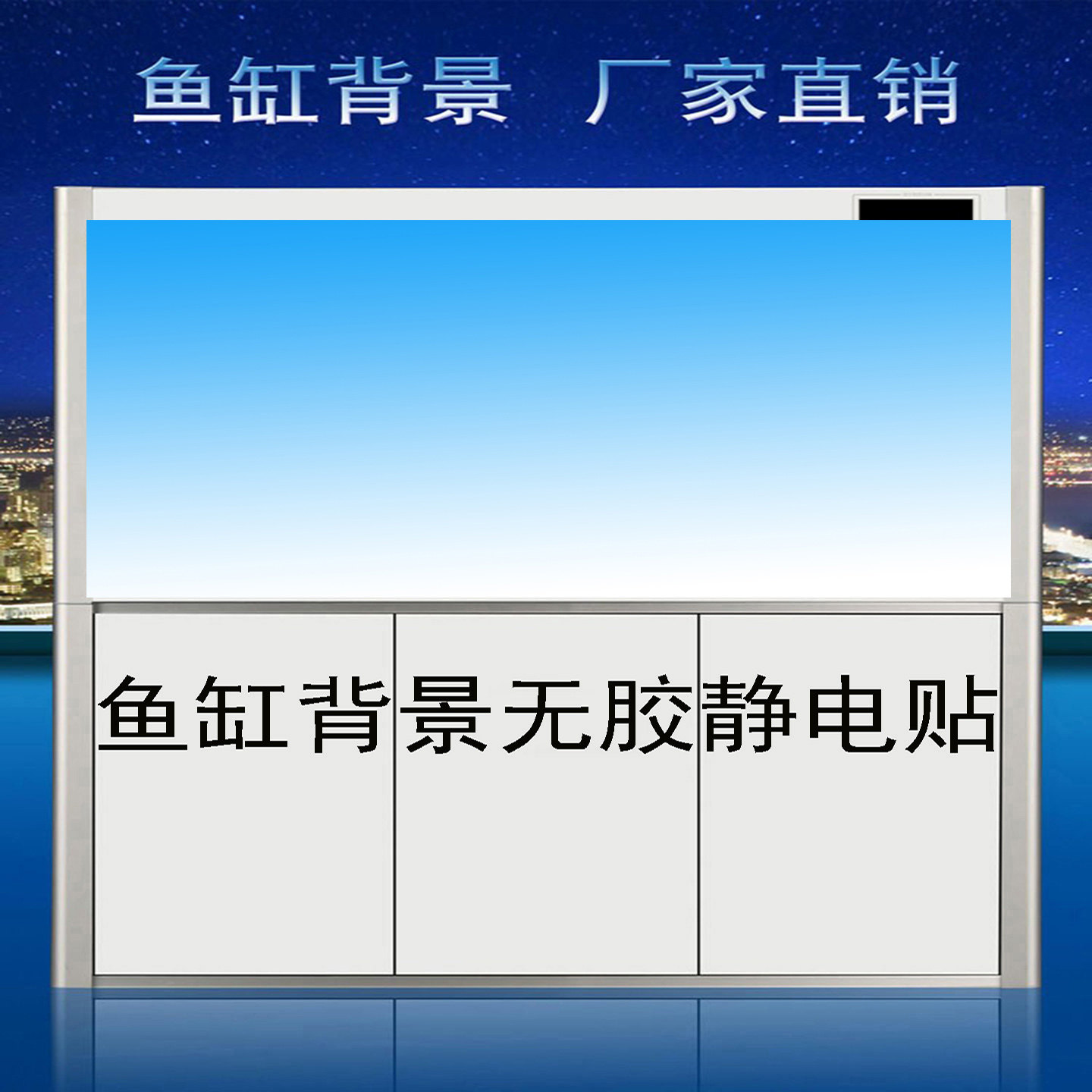 淘宝鱼缸背景贴纸深浅蓝色黑色蓝绿色渐变底部贴纸免胶自粘外贴喷水贴