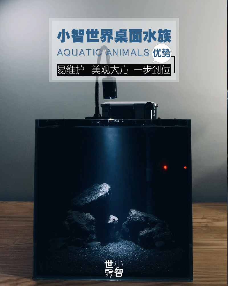 淘宝小智世界鱼缸造景全套超白玻璃缸客厅小型桌面免换水迷你暗黑风