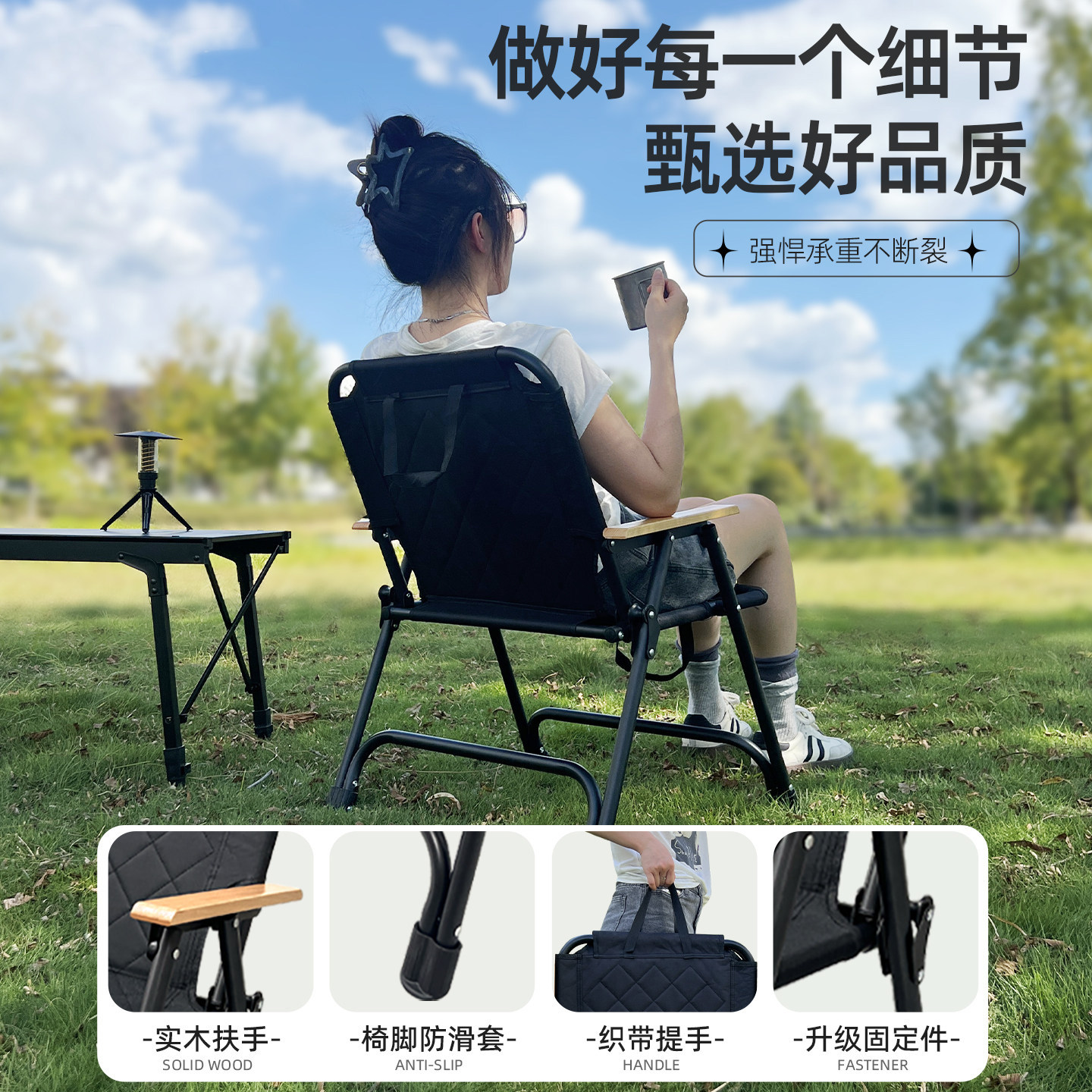天骆驼户外露营椅野外野餐折叠椅写生沙滩钓鱼野营月亮椅装备用品