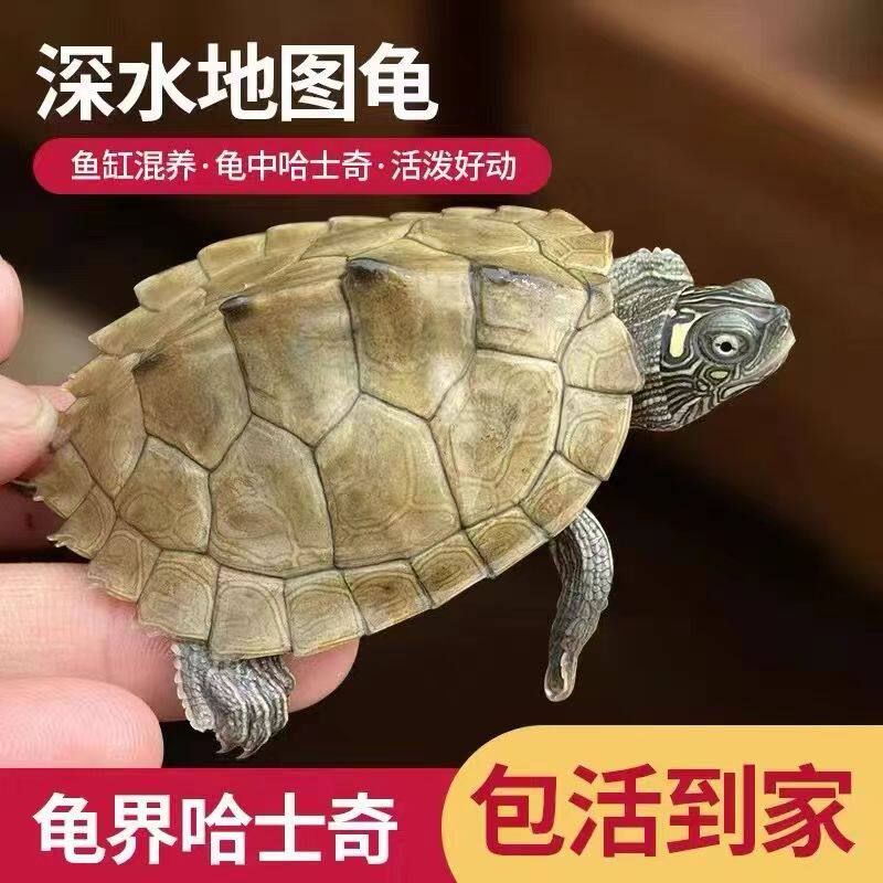 淘宝深水地图龟冷水观赏清洁乌龟宠物活物鱼缸混养密西西比北部活物龟