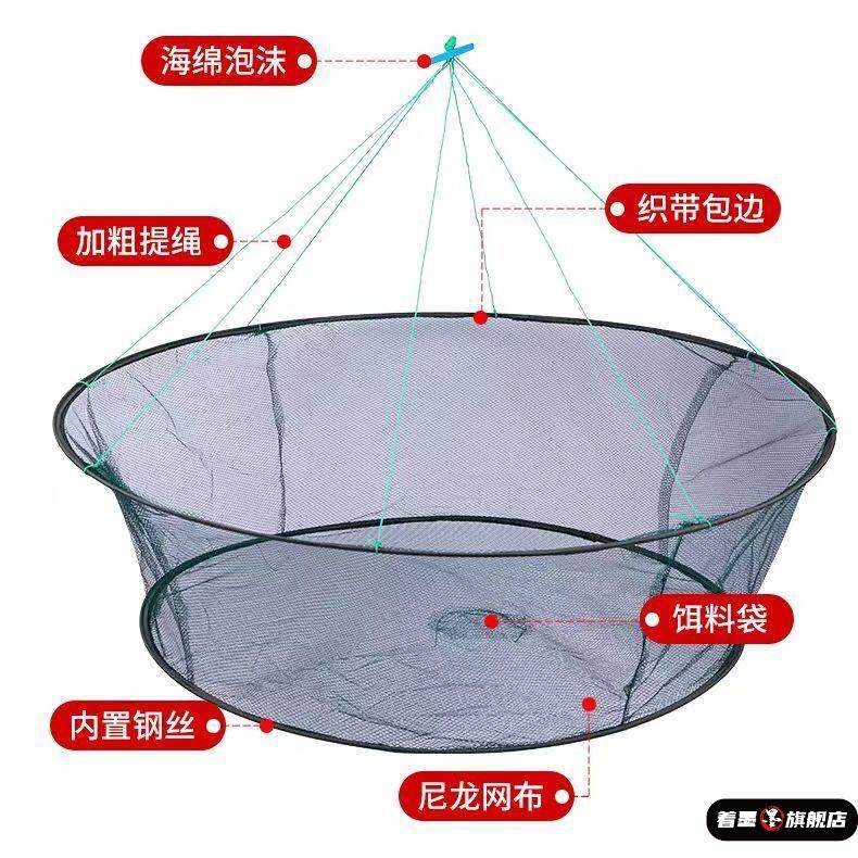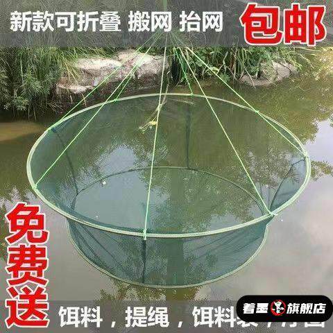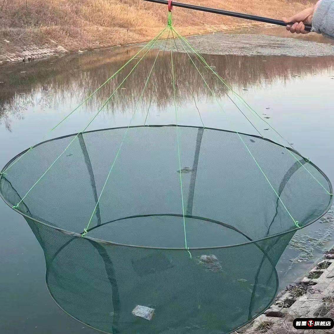 天猫圆形开放式抽拉折叠搬网捕鱼笼渔网捕鱼网神器浮网虾网捕虾篓抬网