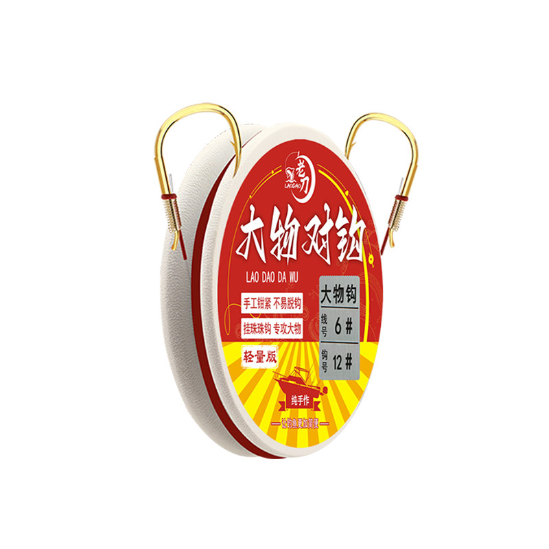 老刀大物钩进口轻量版珠珠钓鱼子线双钩套装,专为垂钓青草鱼等大物设计。采用进口高碳钢材质,钩体强韧耐磨,轻量化处理降低鱼类警觉性。子线搭配优质尼龙线,柔韧抗拉力强,有效防止断线跑鱼。双钩设计提升中鱼率,珠珠装饰模拟天然饵料,增强诱鱼效果。所有钩组均为手工精细绑制,结点牢固,出线顺畅,减少挂底风险。成品即抛即用,省去繁琐绑钩步骤,适合野钓、库钓等多种场景。是追求高效作钓与品质体验的钓友理想之选,助您轻松擒获大物。
