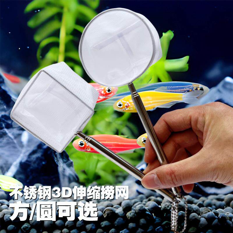 鱼缸3D鱼网鱼捞可拆卸不锈钢伸缩小型渔捞水族箱用品手抄渔网