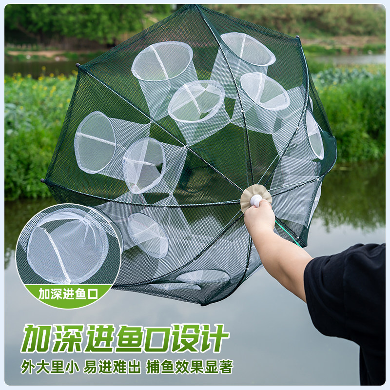 淘30孔大号伞笼折叠捕鱼笼扑鱼神器只进不出抓龙虾网扑渔网鱼网工具
