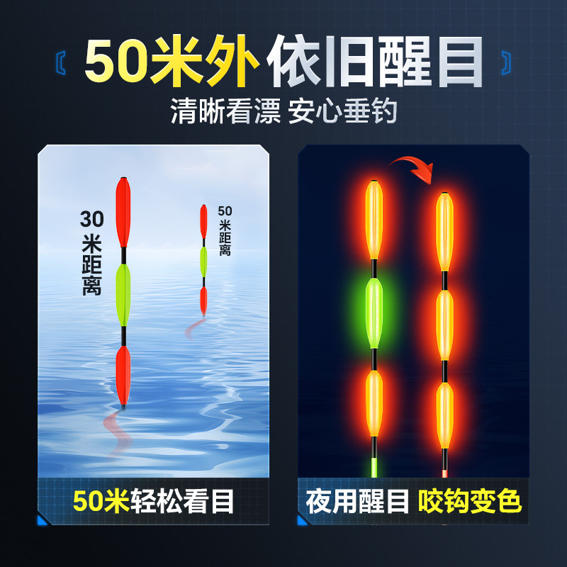 天猫小凤仙路滑夜光漂矶钓漂鲢鳙大物浮漂变色鱼漂加粗醒目远投电子漂