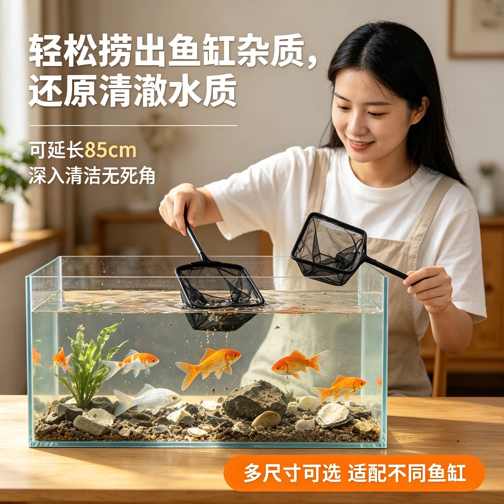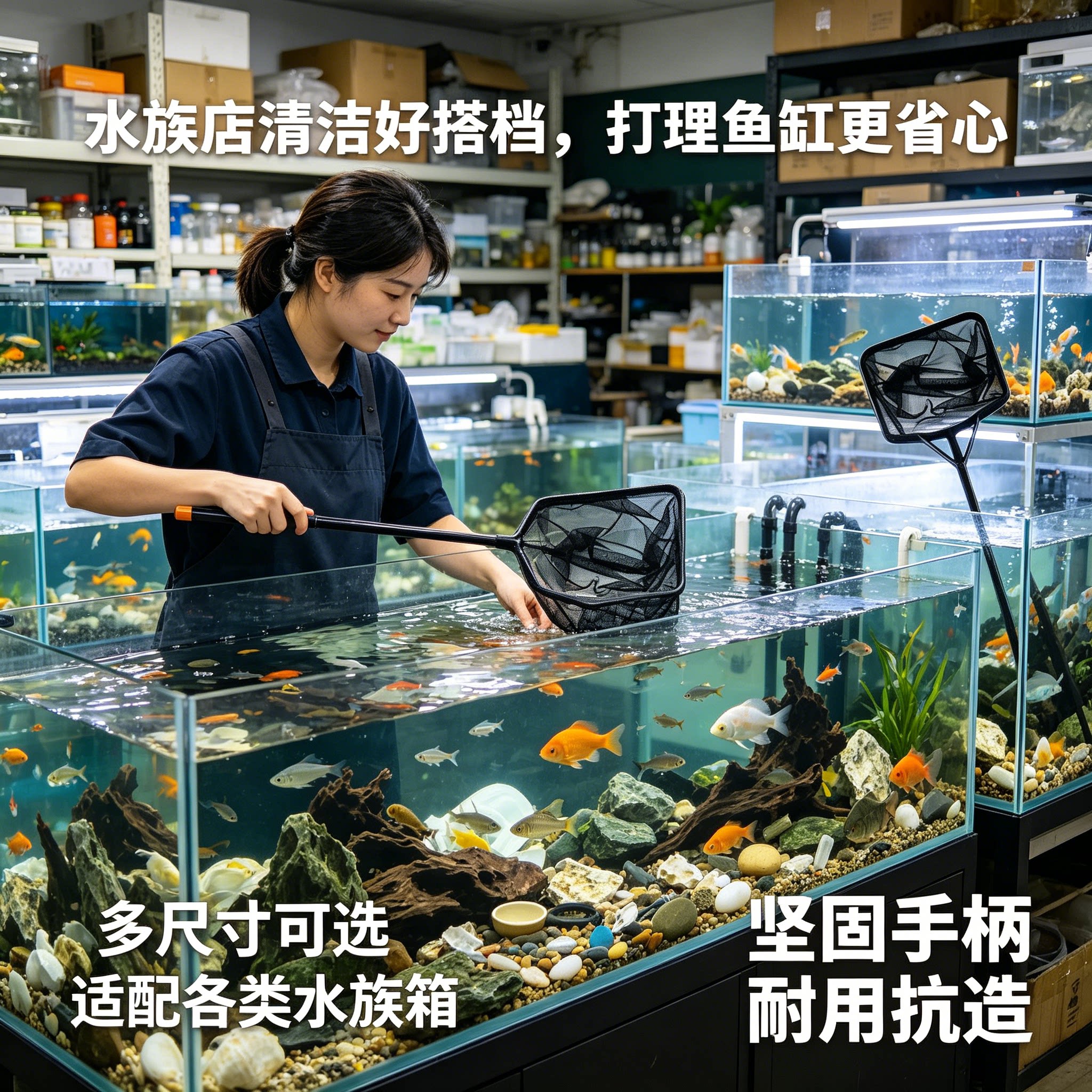 鱼缸专用捞鱼网是专为水族爱好者设计的高效工具,适用于金鱼、热带鱼等各类观赏鱼的捕捞与转移。采用柔软细腻的网兜材质,有效避免刮伤鱼体,保障鱼儿安全。网框有圆形与方形可选,适配不同鱼缸结构,操作灵活便捷。手柄多为环保塑料或不锈钢材质,轻便耐用,握感舒适。网眼细密且透水性强,捞鱼时阻力小,不易挂水草或杂质。无论是日常换水、隔离病鱼,还是清理残饵,这款手抄式鱼捞都能轻松应对,是维护水族箱清洁与鱼类健康的必备工具,广泛应用于家庭鱼缸、观赏鱼店及养殖场。