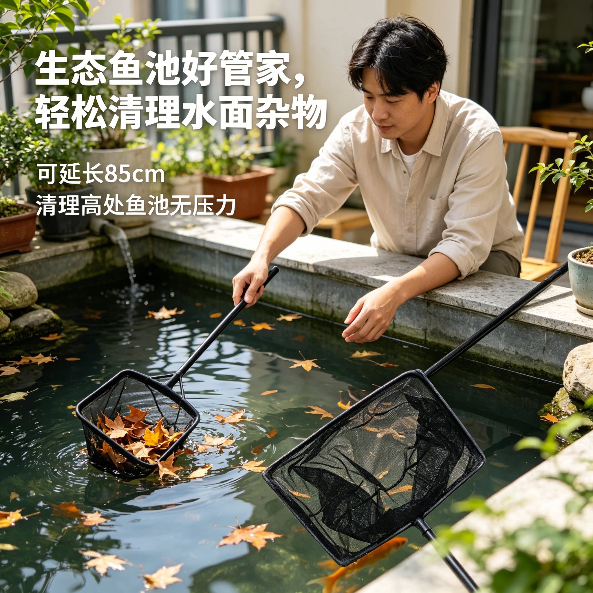 淘游泳池鱼池树叶垃圾捞网锦鲤鱼网抄网捞垃圾渔网鱼捞方形虾捞伸