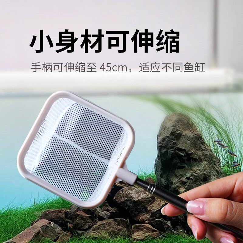 鱼网捞鱼超细鱼捞可伸缩方型鱼捞网密网加密鱼缸捞鱼清粪便水蚤捞