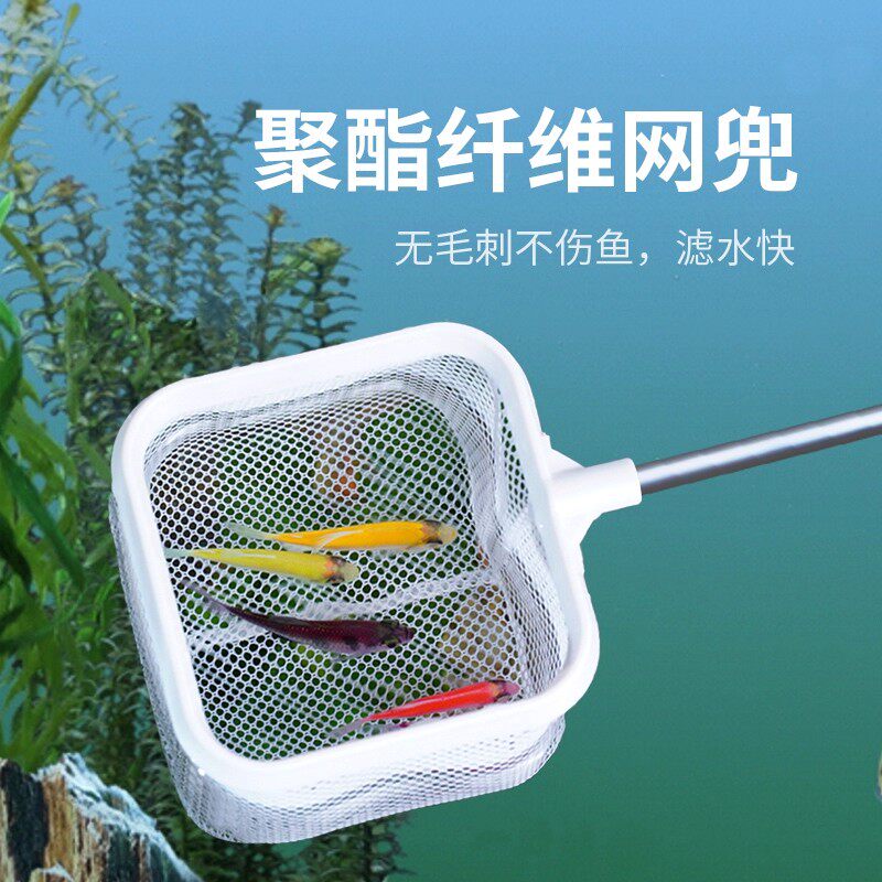清洁捞鱼抄网鱼缸水族箱渔捞网兜方形鱼网观赏鱼金鱼鱼捞耐用手抄