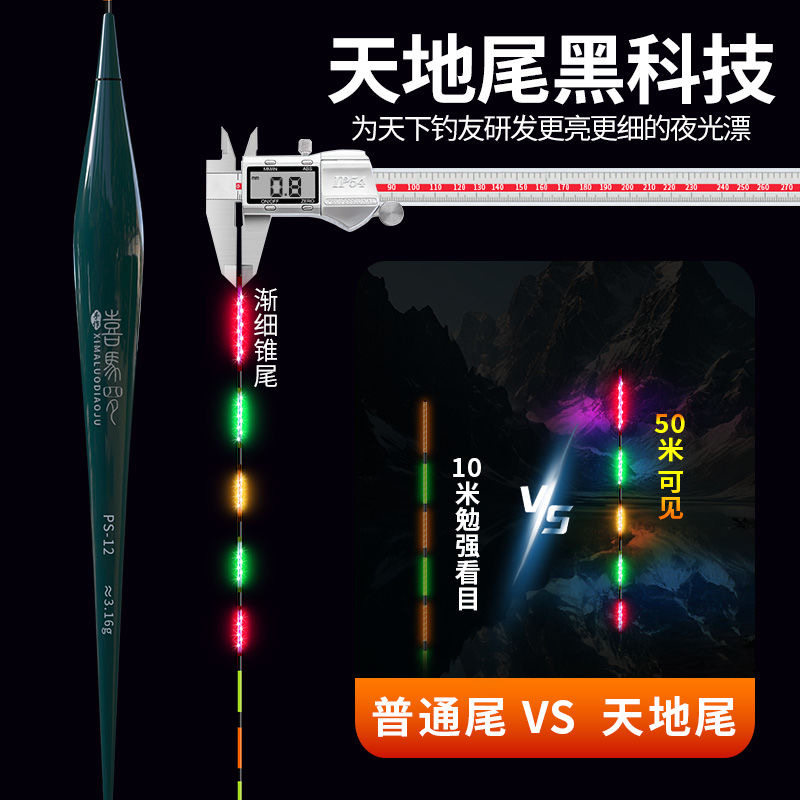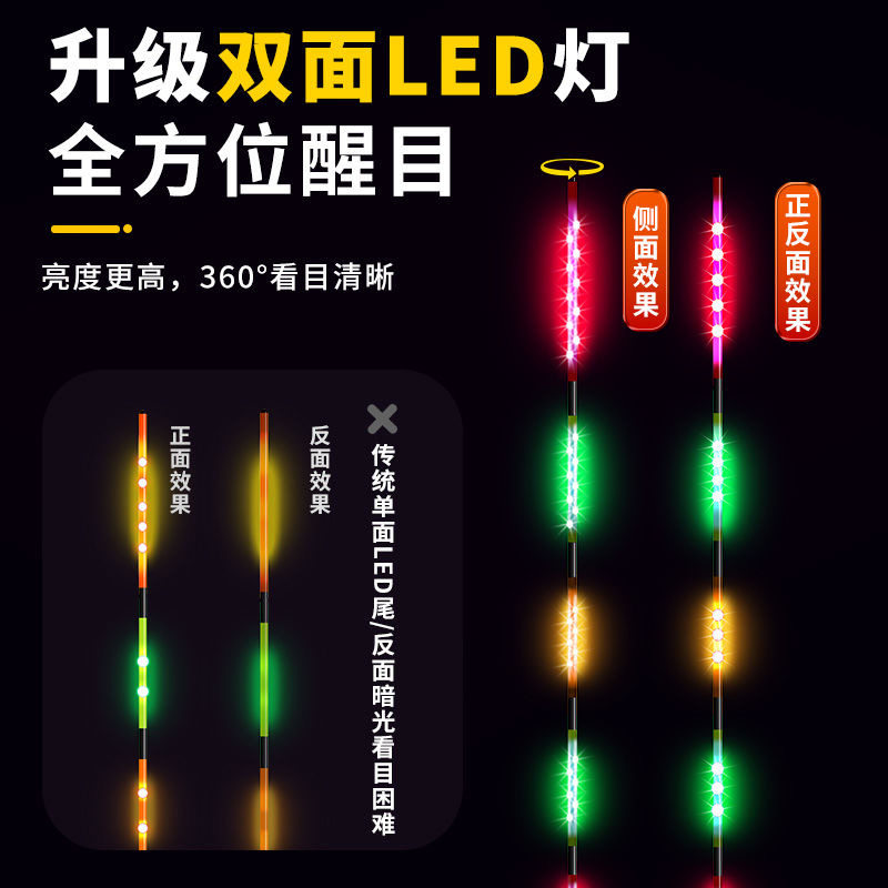 天汉鼎夜光浮漂LED电子漂日夜两用尾高灵敏鲫鱼漂细尾一体超亮醒目