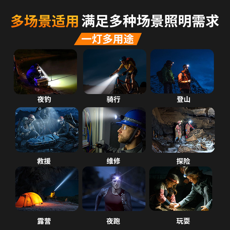 沃尔森感应头灯强光夜钓钓鱼专用充电超亮超长续航头戴式照明手电