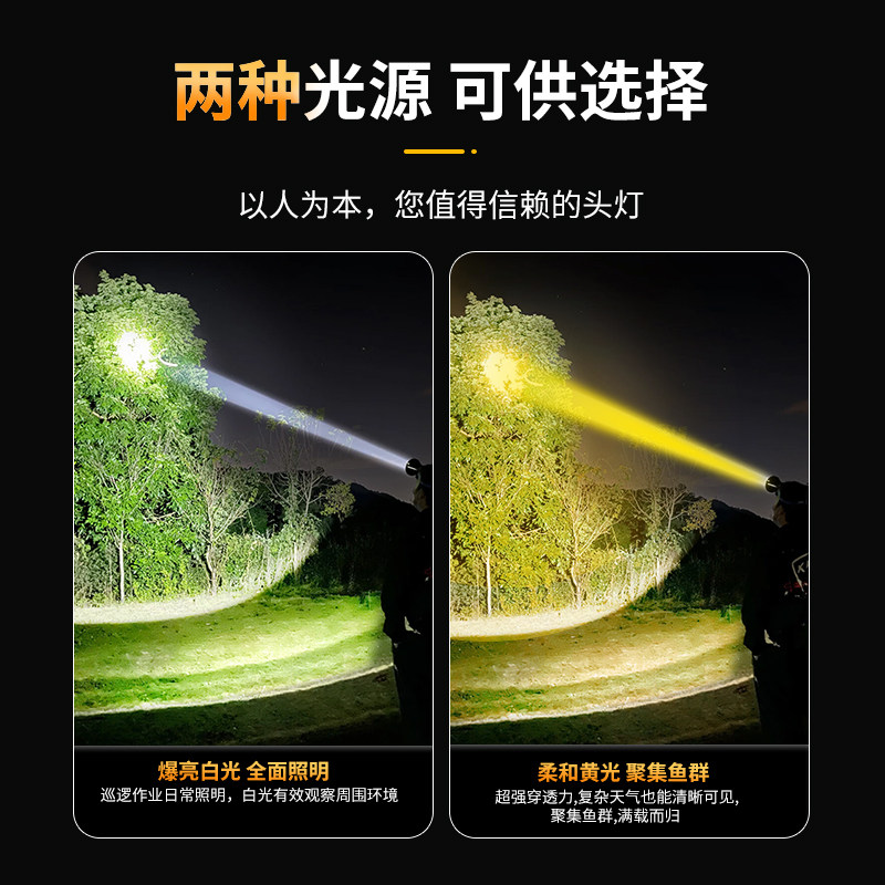 黄光头灯强光照鱼抓夜钓鱼赶海专用野外纯黄光专用2025新款头戴式