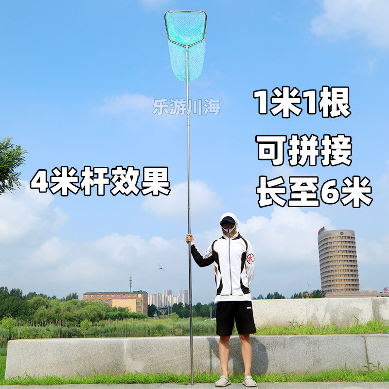 天猫抄网鱼网捞鱼网兜分段大物加厚超大鱼平头捞头清塘抄网不锈钢渔具