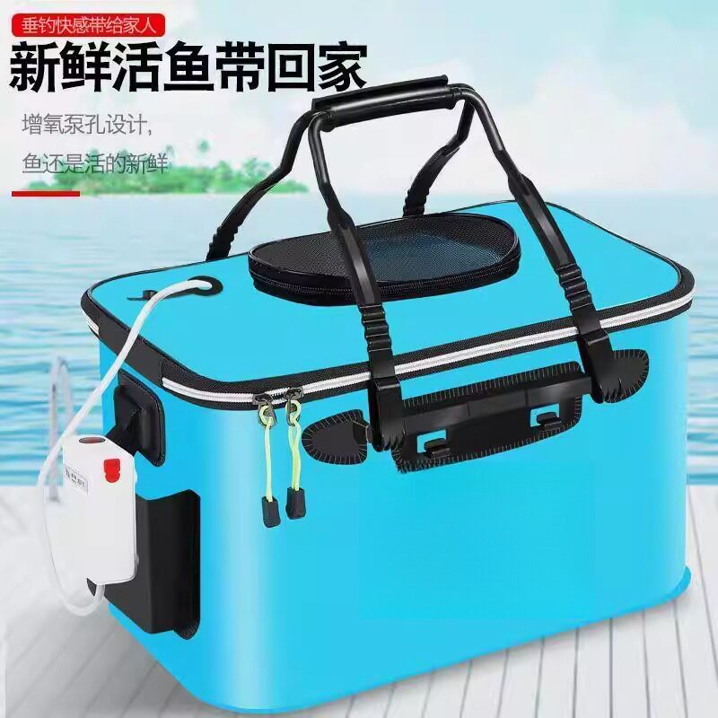 天猫野钓鱼箱带氧气泵鱼包袋装鱼桶活鱼桶加厚鱼护桶可折叠防水装鱼桶