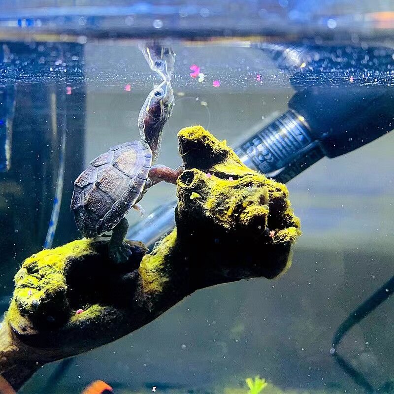 乌龟、麝香龟、剃刀龟等深水龟品种因其独特外形和较强适应力,成为热门观赏龟类。其中,麝香龟(俗称“臭蛋龟”)体型小巧、性格温和,适合与性情相近的龟混养;剃刀龟背甲高耸如刀,极具观赏性,需较深水域和晒背平台。迷你蛋龟(如东方泥龟)体型迷你,适合小型水族箱。混养时需注意水质清洁、提供充足躲避与晒背区,避免种间争斗。这些深水龟均需水陆结合环境,搭配过滤系统,适合有一定饲养经验的爱好者。合理搭配可实现美观又和谐的生态鱼缸。