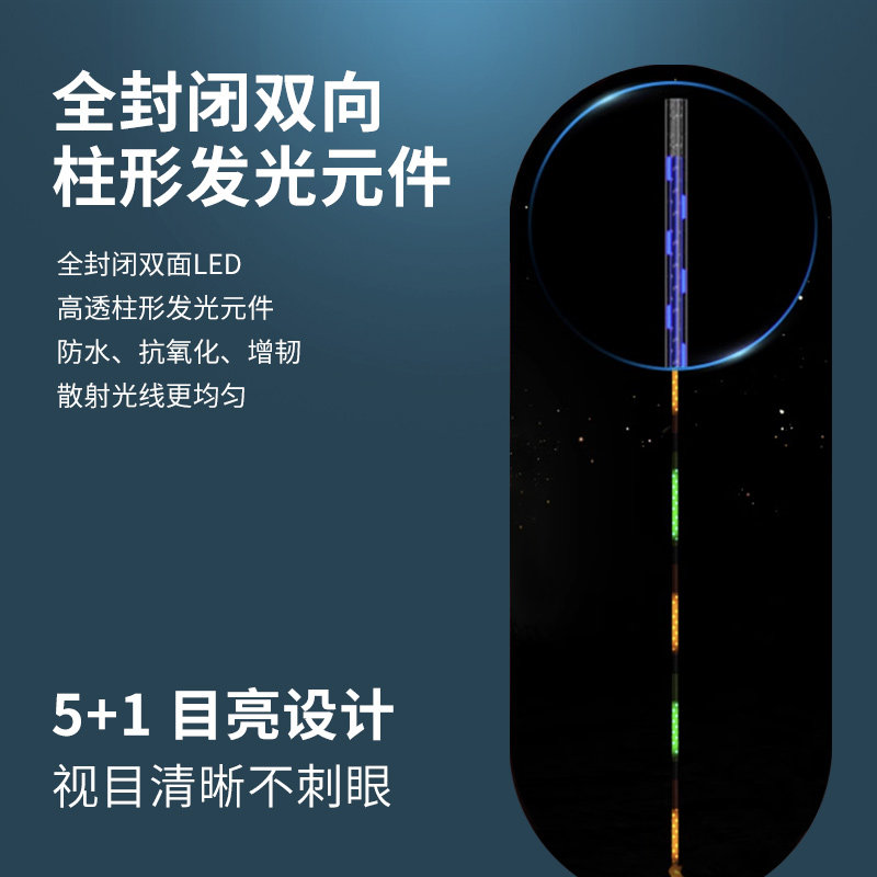 2025年全新推出的夜光鲫鱼漂——电子漂一体无缝夜光漂,专为夜钓爱好者匠心打造。采用高亮度LED灯珠,光线柔和持久,夜间观漂清晰醒目,有效提升中鱼率。一体无缝设计杜绝进水隐患,防水性能卓越,耐用性更强。超细硬尾结构兼顾灵敏性与稳定性,轻松应对微风细浪,精准传递鱼讯。浮漂材质轻盈坚韧,吃铅量精准,适配多种作钓环境。内置长效电池,续航持久,操作简单,夜间垂钓更省心。无论是静水还是缓流,这款专用夜光漂都能助您轻松掌控鱼情,是2025年夜钓装备的优选之作。