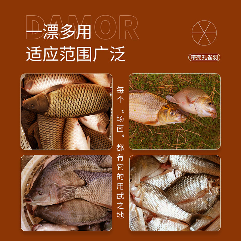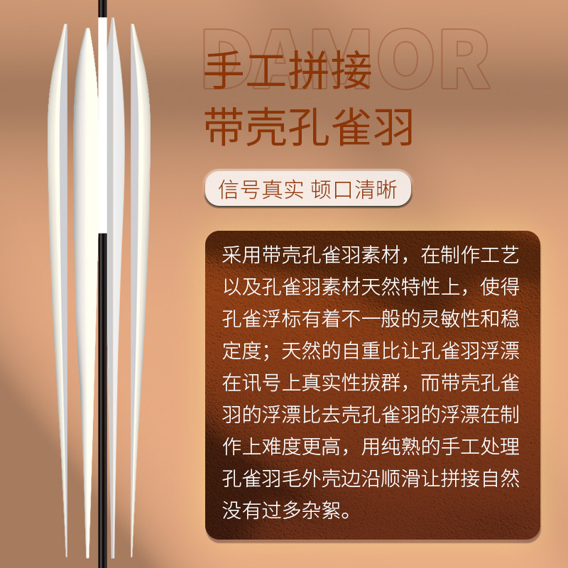 天猫达摩浮漂新款红袍604鲫鱼漂高灵敏醒目鱼漂孔雀羽手作底钓罗非漂