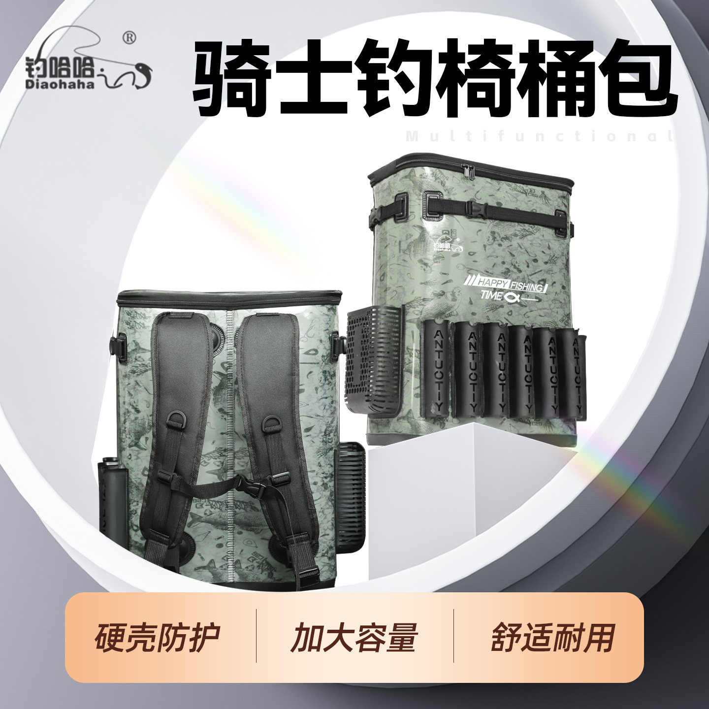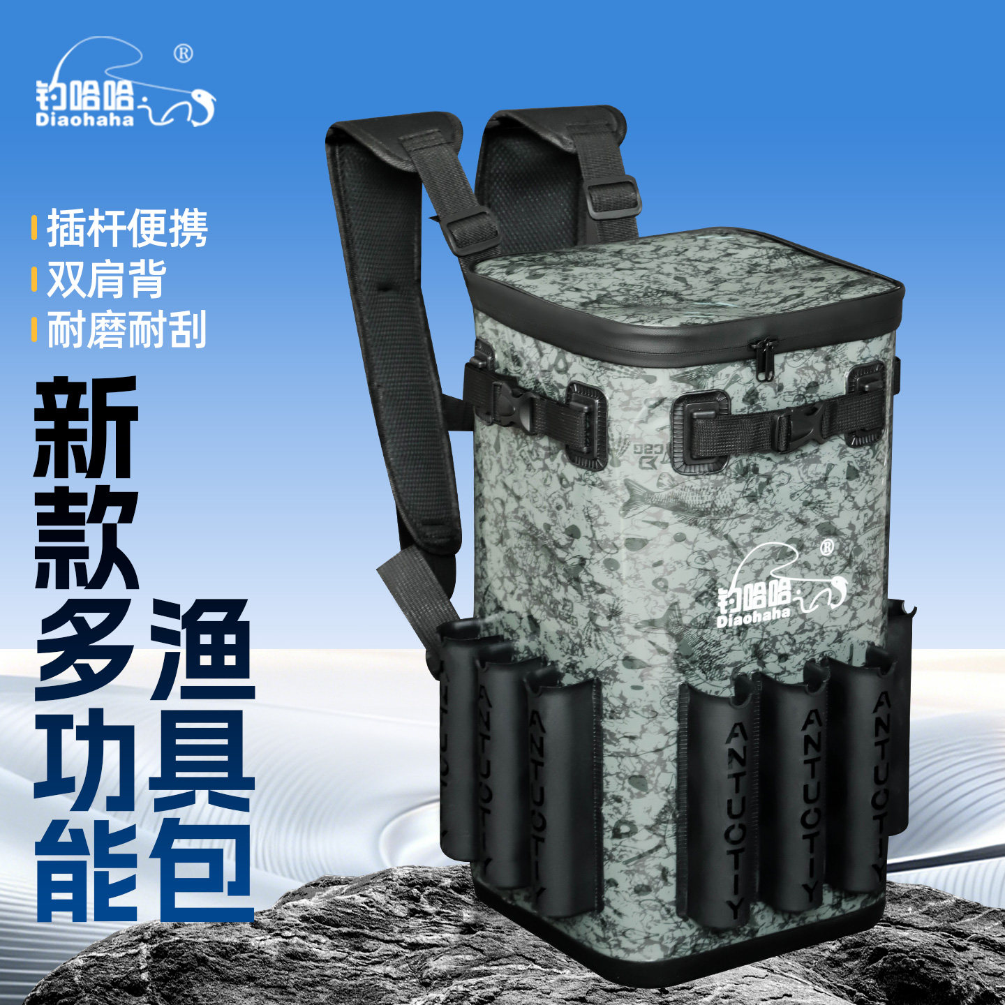 天猫钓哈哈2026新款大容量多功能钓鱼桶包EVA防水双肩背6杆槽钓鱼箱