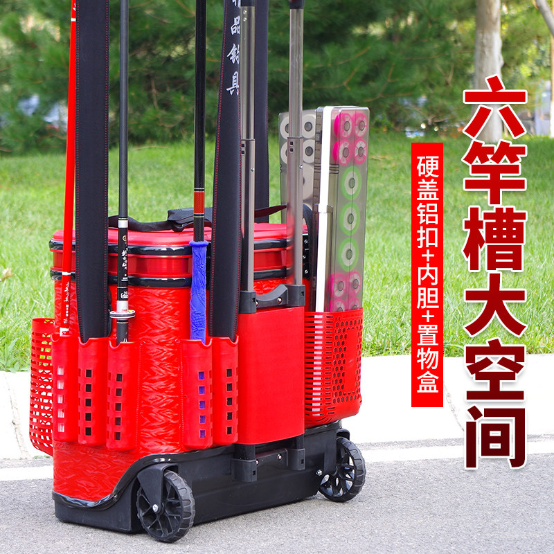 淘宝多功能钓鱼桶可坐钓箱六r插槽孔鱼护桶硬盖加厚大轮装活鱼桶拉杆