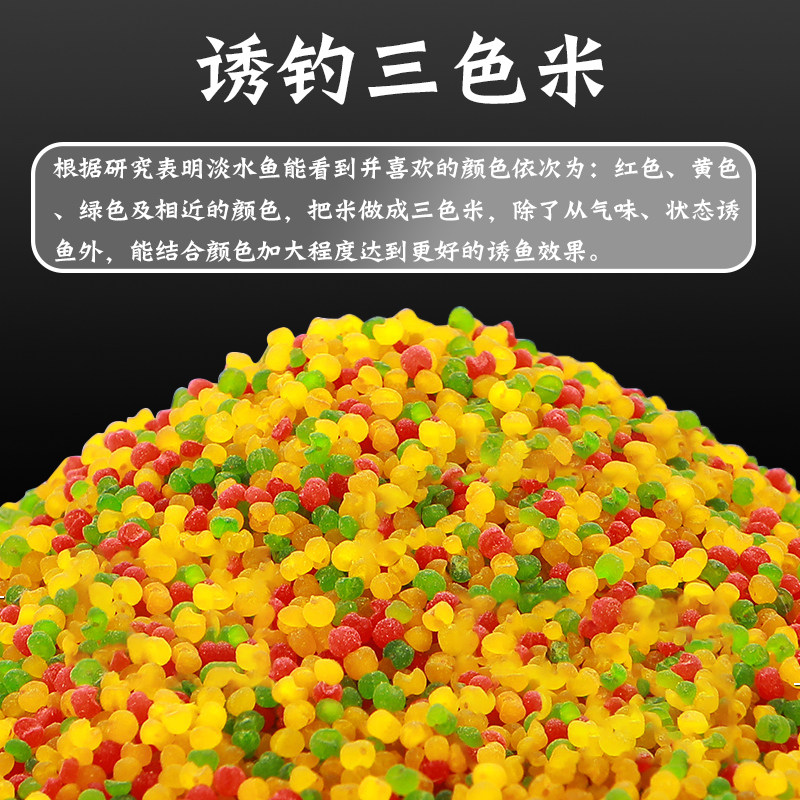 钓鱼三色米鱼饵是一款专为黑坑、野钓设计的复合型打窝诱饵,集麝香小米、酒米、麻团颗粒于一体,红、黄、绿三色搭配,视觉与嗅觉双重诱鱼。富含天然谷物香与麝香成分,有效吸引鲫鱼、鲤鱼等底层鱼类。酒米发酵醇香,持久留鱼;麻团颗粒缓沉雾化,形成立体诱鱼区;麝香小米细腻扩散,增强穿透力。适用于手竿、抛竿打窝,亦可配合钓饵使用,提升聚鱼速度和上钩率。无论是静水湖泊还是流动河流,都能快速诱鱼、长效留窝,是休闲垂钓与竞技比赛的得力助手。