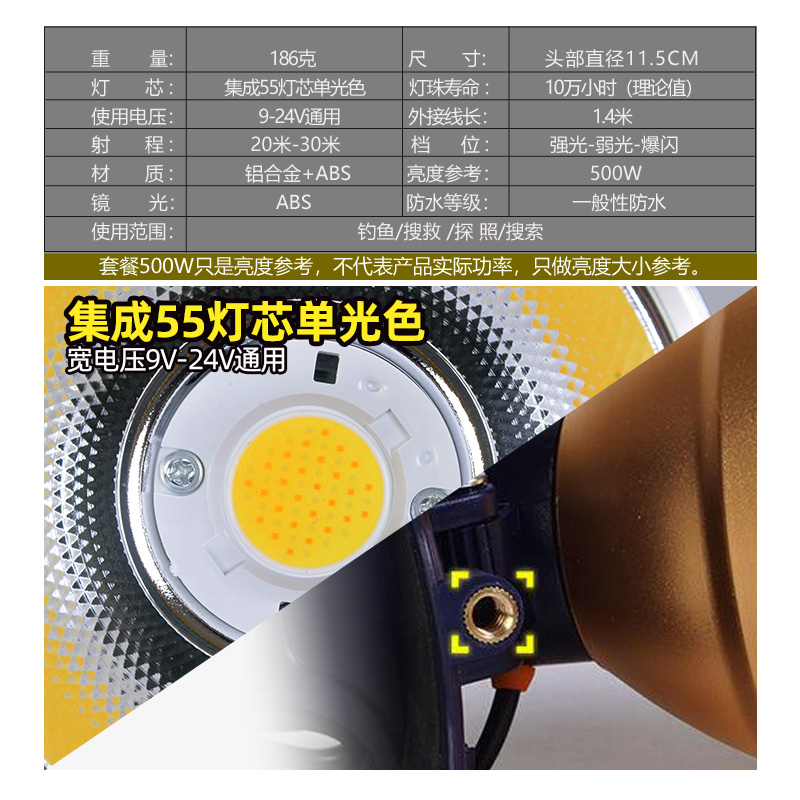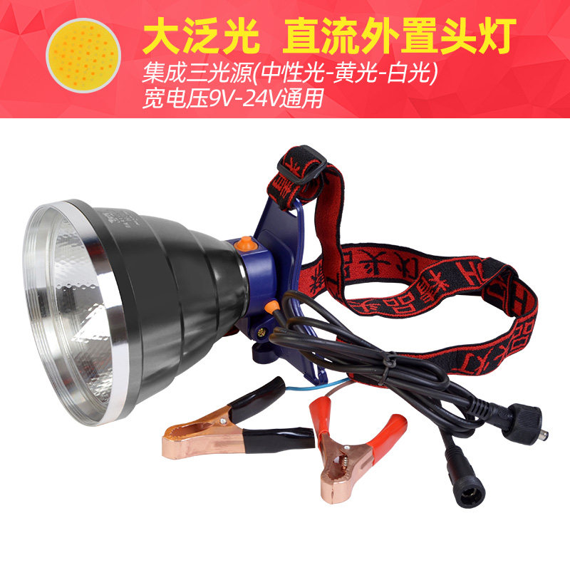 淘宝12V伏头灯超亮LED强光大光斑散光照鱼钓鱼黄光500W夹电瓶外接灯头
