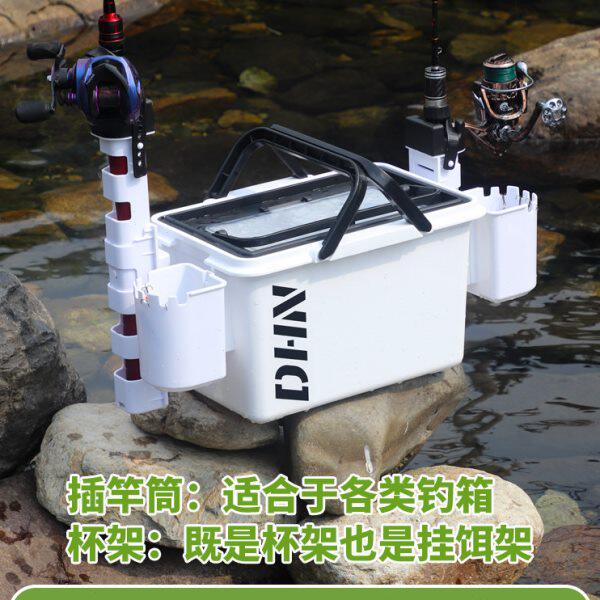 淘明邦路亚钓箱插竿筒立杆器多功能鱼竿收纳桶水杯架钓鱼箱配件竿插