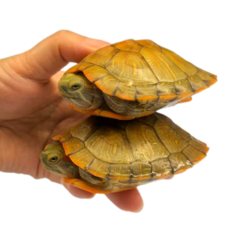 巴西龟(又称红耳龟)是 popular 的入门级宠物龟,性情温和、适应力强,非常适合家庭饲养。黄金龟苗色彩鲜艳,背甲金黄,搭配红耳特征,观赏性极高,常被称为“金钱龟”,寓意吉祥招财。作为情侣对龟饲养,不仅能增进互动乐趣,也象征成双成对的美好寓意。幼龟体型小巧,所需空间不大,搭配简单的水陆缸即可健康生活。它们杂食性,喂食龟粮、小鱼虾或蔬菜即可,饲养成本低。只要注意水质清洁、适当晒背和温度控制,巴西龟寿命可达20年以上,是陪伴长久的可爱活体宠物,特别适合新手和儿童家庭。