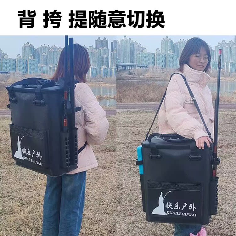 名徒加厚EVA鱼护桶多功能升级插竿双肩背战车多用渔具桶智能鱼桶
