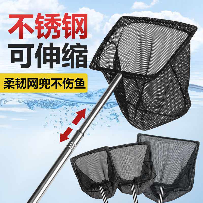 淘宝鱼缸鱼捞不锈钢可伸缩渔捞大号方型鱼网手抄网热带鱼家用小鱼捞网