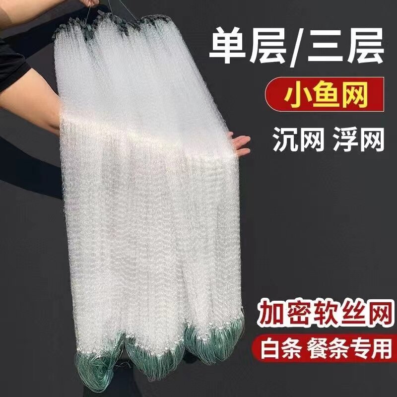 淘宝鱼网渔网三层单层一指沉网粘网捕鱼马口丝网白条鲫鱼餐条浮网挂网