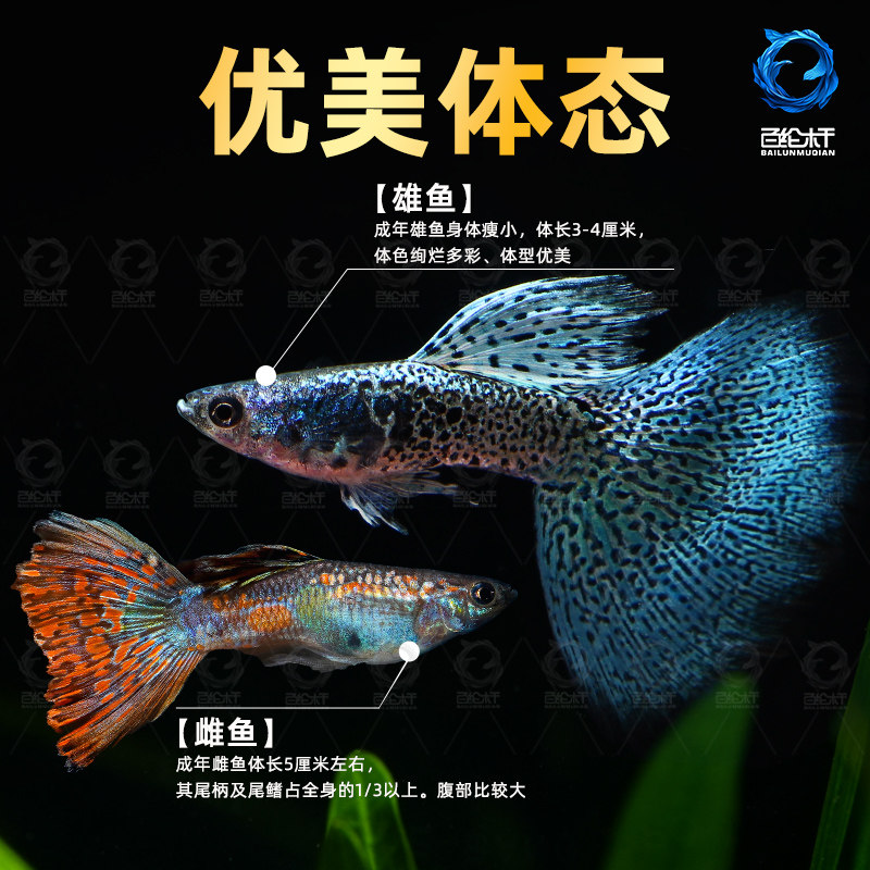 淘孔雀鱼热带鱼活鱼苗淡水小型好养易活下崽观赏鱼胎生凤尾鱼灯科鱼