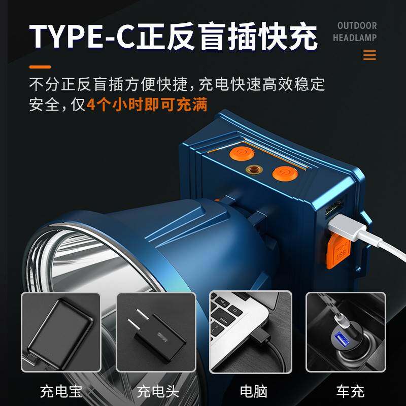 淘新款LED回收感应type-c充电可换电池头灯便携型头戴户外夜钓鱼灯