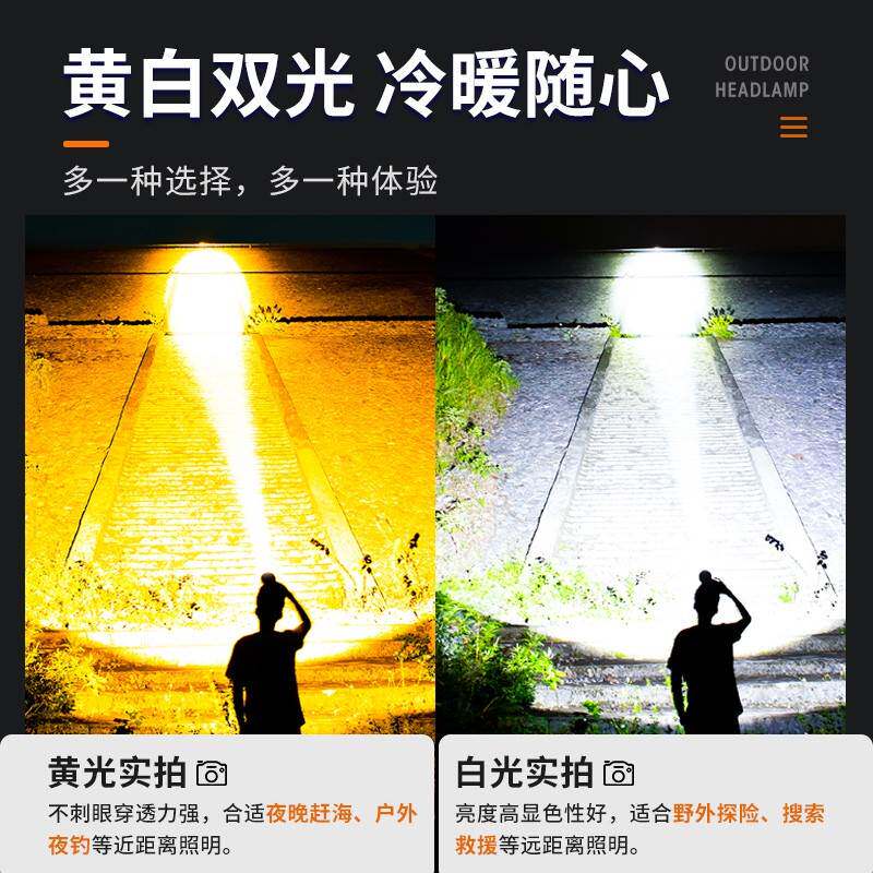 天钓鱼头灯2026新款超亮感应充电头戴式照明灯大容量续航登山户外灯